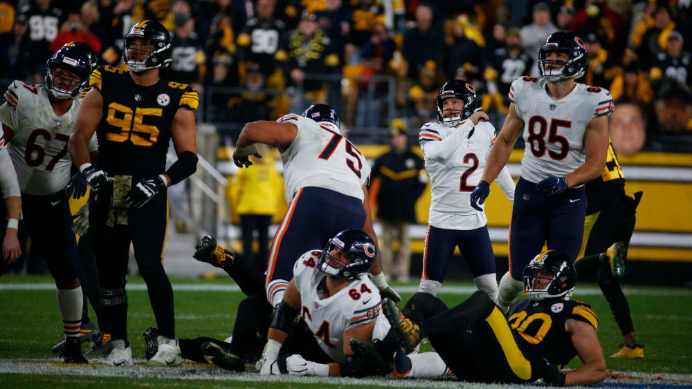 PITTSBURGH PENNSYLVANIA - NOVEMBER 08. Steelers look to keep Monday night dominance going vs Bears. Unfortunately for Chicago Ben Roethlisberger led the Steelers down the field in 120 seconds to take a 29-27 lead before Bears kicker Cairo Santos missed a 65-yard game-winning field goal.